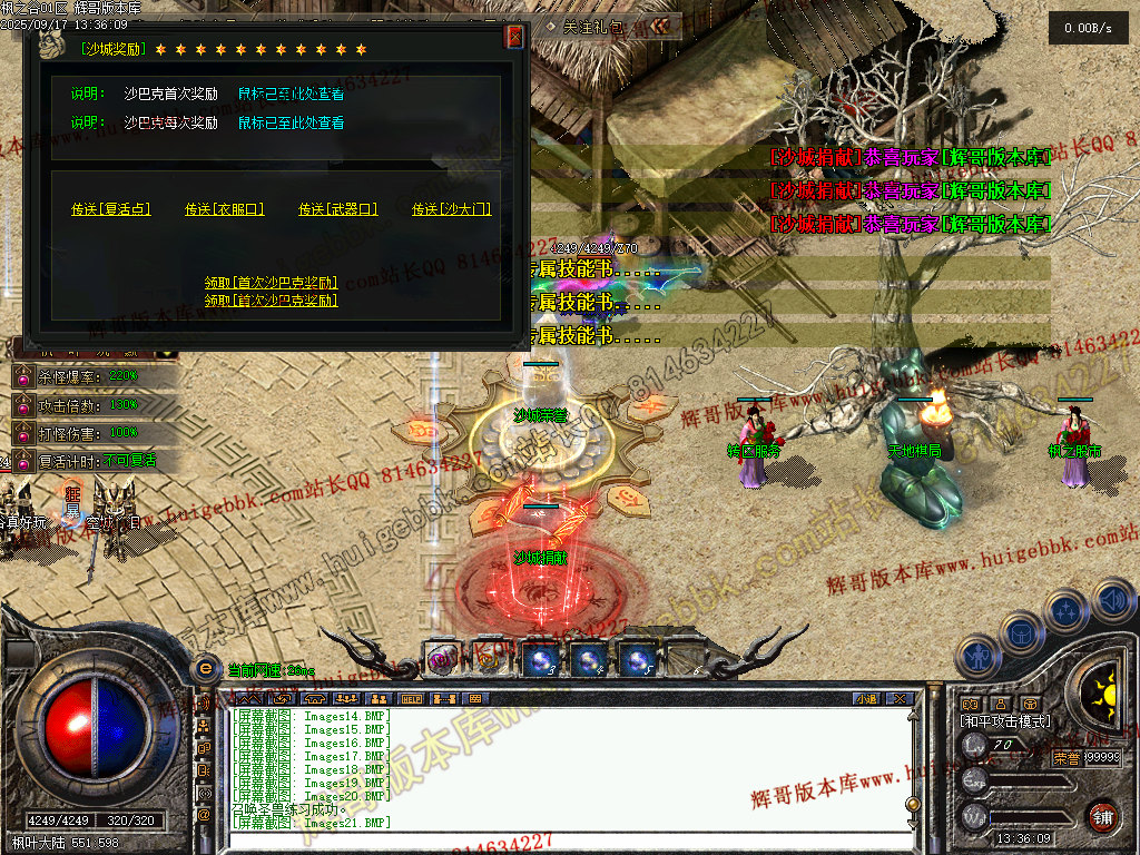 9.升级奖励荣誉值,攻沙奖励荣誉值可以换取荣誉物资,首爆首杀奖励金币+元宝+通宝,每区上万回馈;