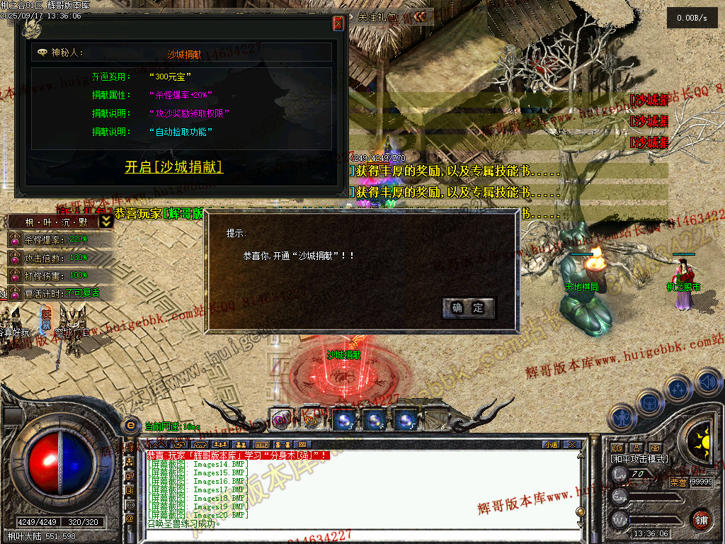 捐献:自动拾取,沙城奖励领取权限,红包领取权限