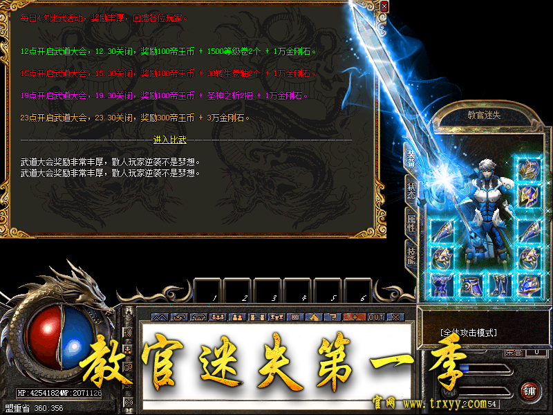 5.【游戏介绍】 PK流畅,无秒杀,属性设置合理,BUFF属性精心设计,打架看手法,绝对没有变态垃圾BUFF。