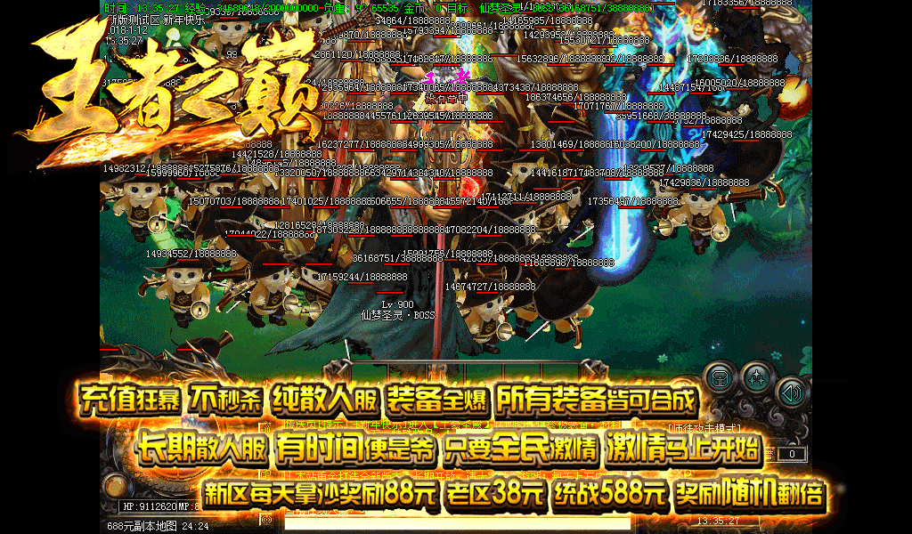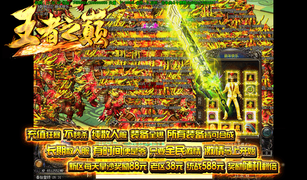 【游戏公告】:顶赞好打 散人好发展,爆率非常之高,BOSS怪物10分钟刷新。