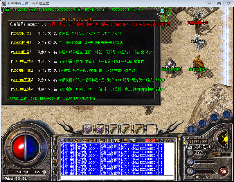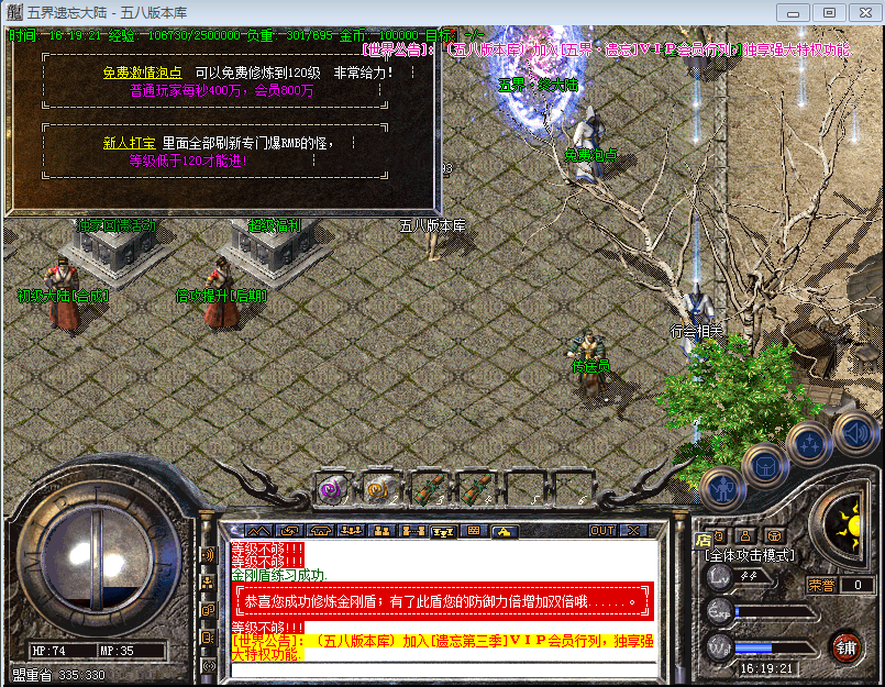 回馈玩家不用多说上线领取回馈.直接转身.等级.快人一步。绝对爆出所有物品!本服分为五个大陆