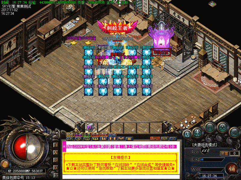 元宝比例:1:500W 点卡送90% 网银送100%.无金刚石.无积分.一律网站充值