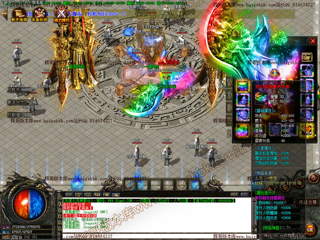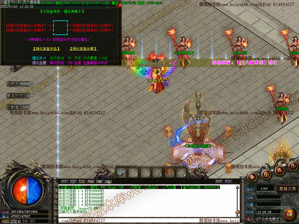【最新内容】:充值回馈调整;装备属性调整同等装备无秒杀;怪物属性与爆率调整